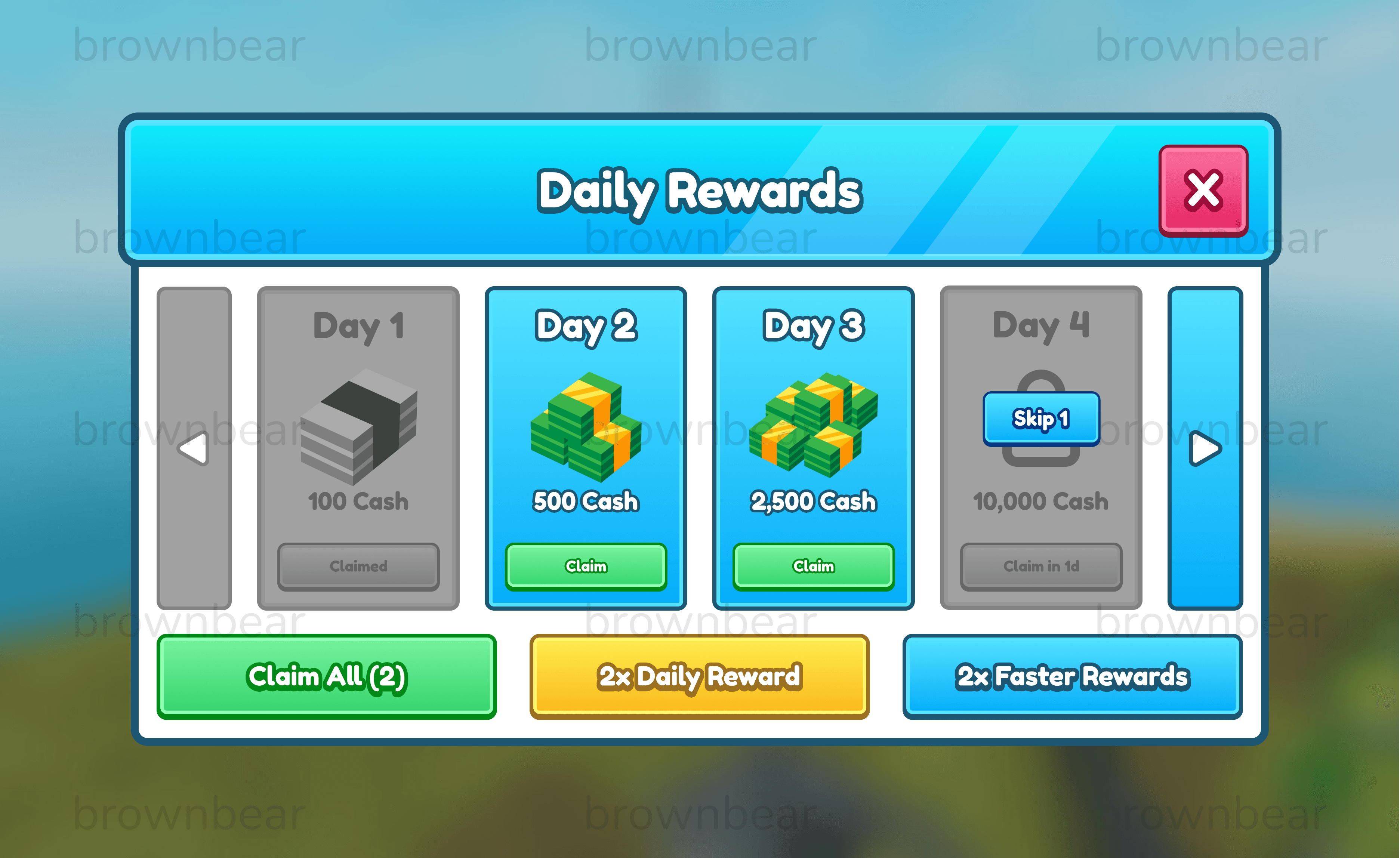This is a cartoony-styled daily rewards frame I designed.